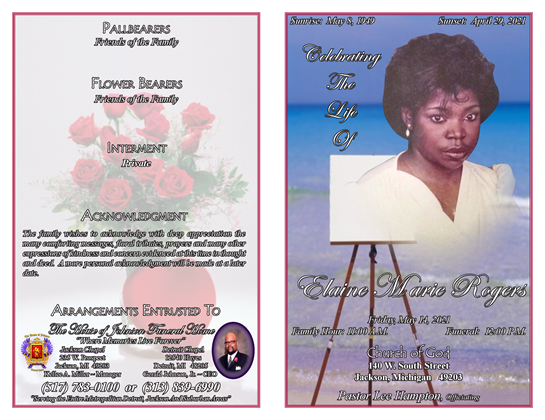 Elaine Marie Rogers was born on May 8th, 1949, in Indianapolis, Indiana. She was the first child born to the late Horace Daniel and Constance Sumner. Her earlier education was in Indianapolis until her family moved to Jackson, Mic Read Obituary